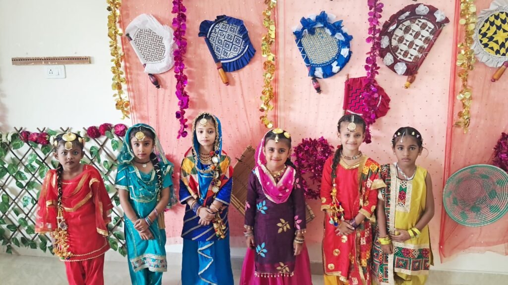 The highlight of the day was seeing our students and teachers embrace the festival’s spirit by dressing up in exquisite traditional Punjabi wear. The little girls, adorned with sparkling headpieces, intricate jewelry, and bright dupattas, looked like true ambassadors of Punjabi culture. From deep reds and royal blues to sunny yellows and emerald greens, the outfits were a vibrant testament to the region’s rich textile heritage.